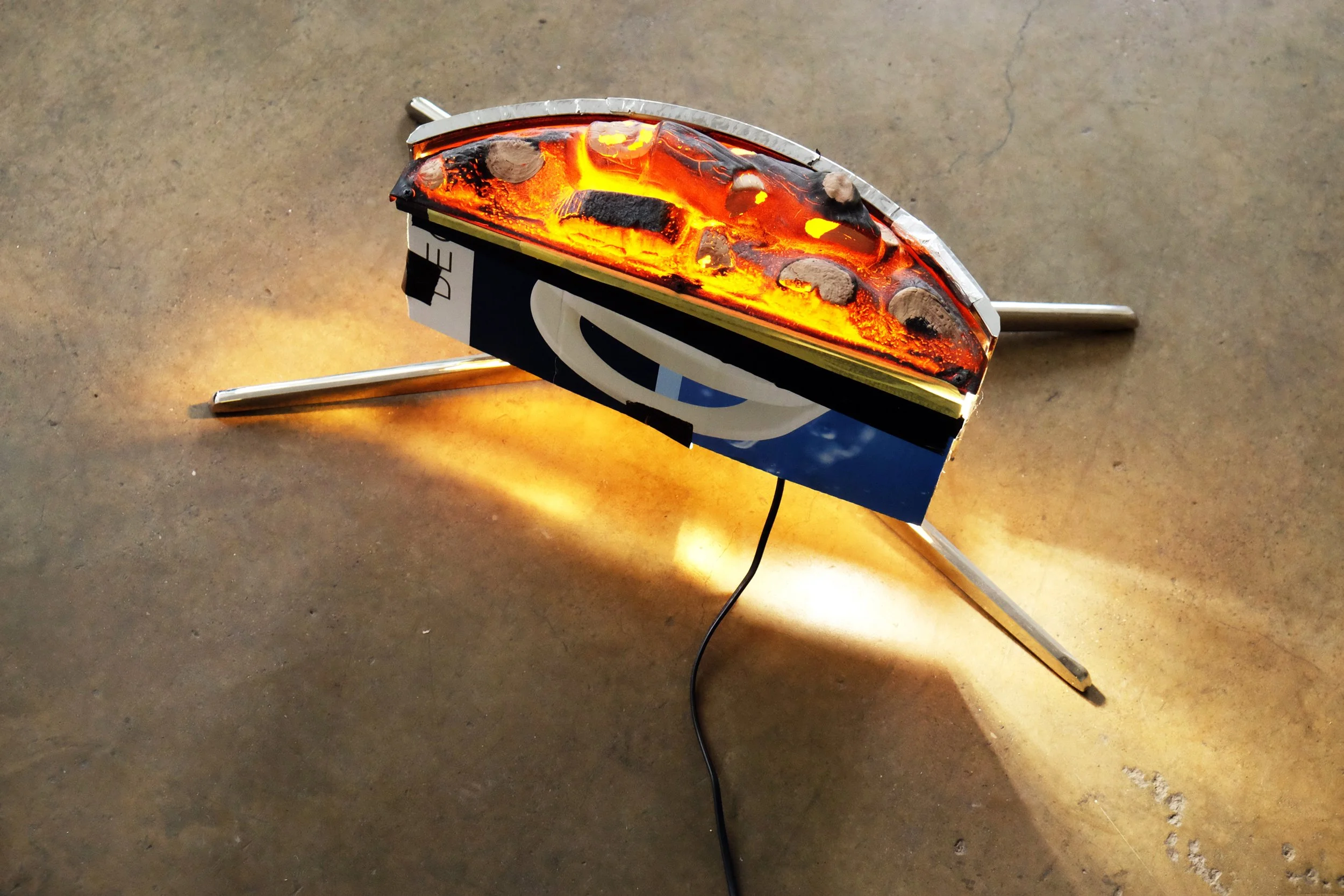 Tim MaxeinerBetter play it Safe, 2022Found fake fire, TV stand, electronic components10x25x14 inches Tim MaxeinerBetter play it Safe, 2022Found fake fire, TV stand, electronic components10x25x14 inches Tim MaxeinerBetter play it Safe, 2022Found fake fire, TV stand, electronic components10x25x14 inches