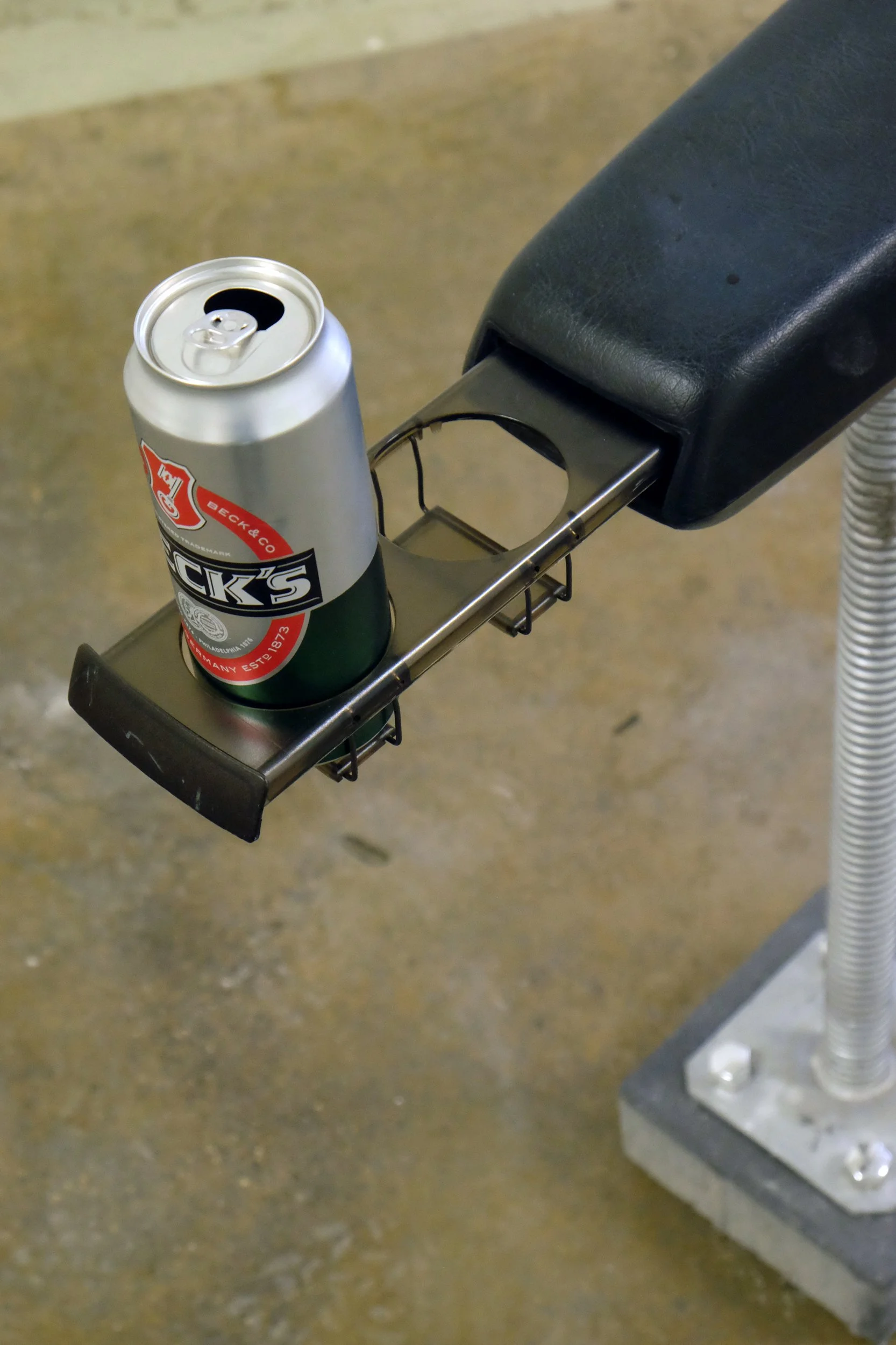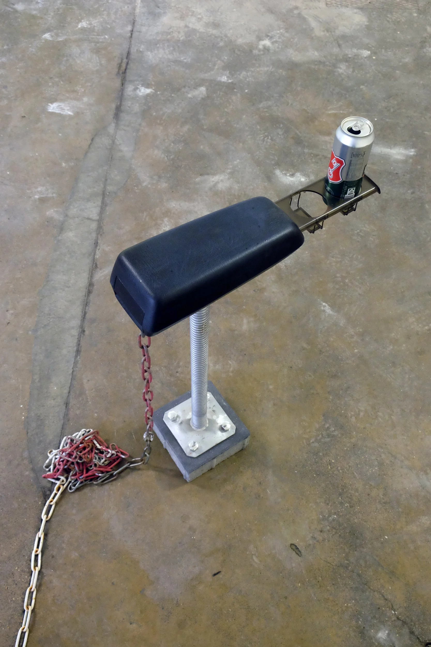 Volvo arm rest, Becks can, metal component, brick, chain